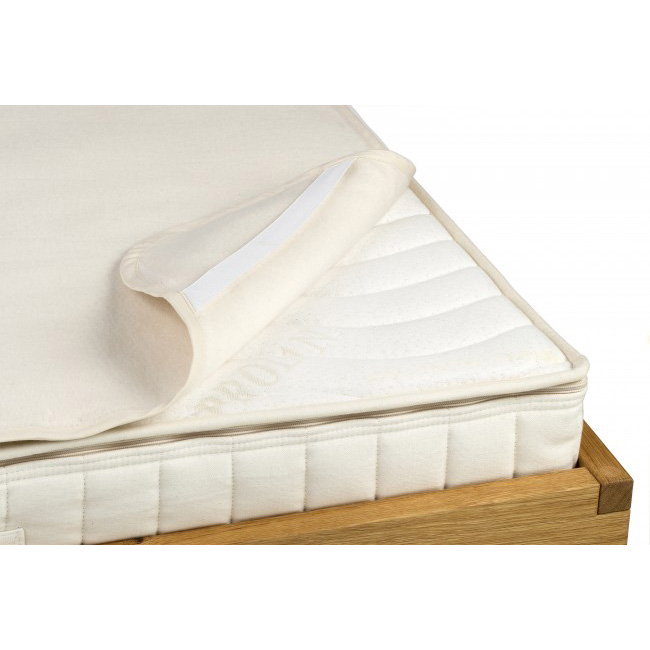 Madrasskydd/bäddmadrass som andas. Av ren ekologisk bomull i särskilt tjock, absorberande dubbel Moltonkvalitet med praktiska spännband. Krympmån ingår från början.