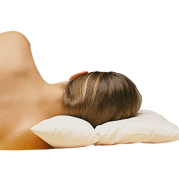 Kudde stoppad med lammull och delad i två delar. Den ena delen är till för att vila huvudet på, den andra utgör stöd för nacken och är lite fastare stoppad. Man kan också vika kudden till en högre stödkudde.