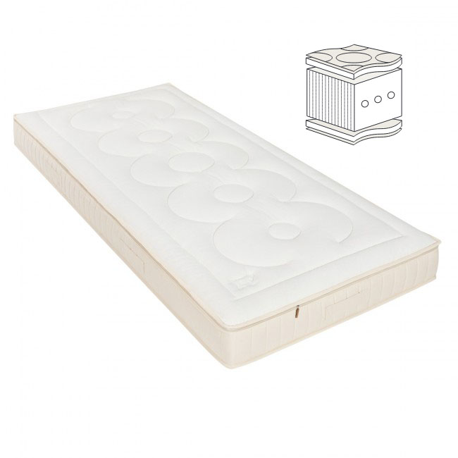 Madrasserna i vår serie Sleep-Line finns i fem olika fastheter. Den 15 cm höga kärnan är innesluten i ett quiltat överdrag, vars överdel kan tas bort (gäller endast jersey-varianterna) och bytas ut med hjälp av en dragkedja som löper hela vägen runt. Beroende på årstid eller hur varm du känner dig kandu välja mellan ett toppskikt av lammull (fuktighetsreglerande), bomull (vegan), kamelull (särskilt varmt)eller silke (svalkande).